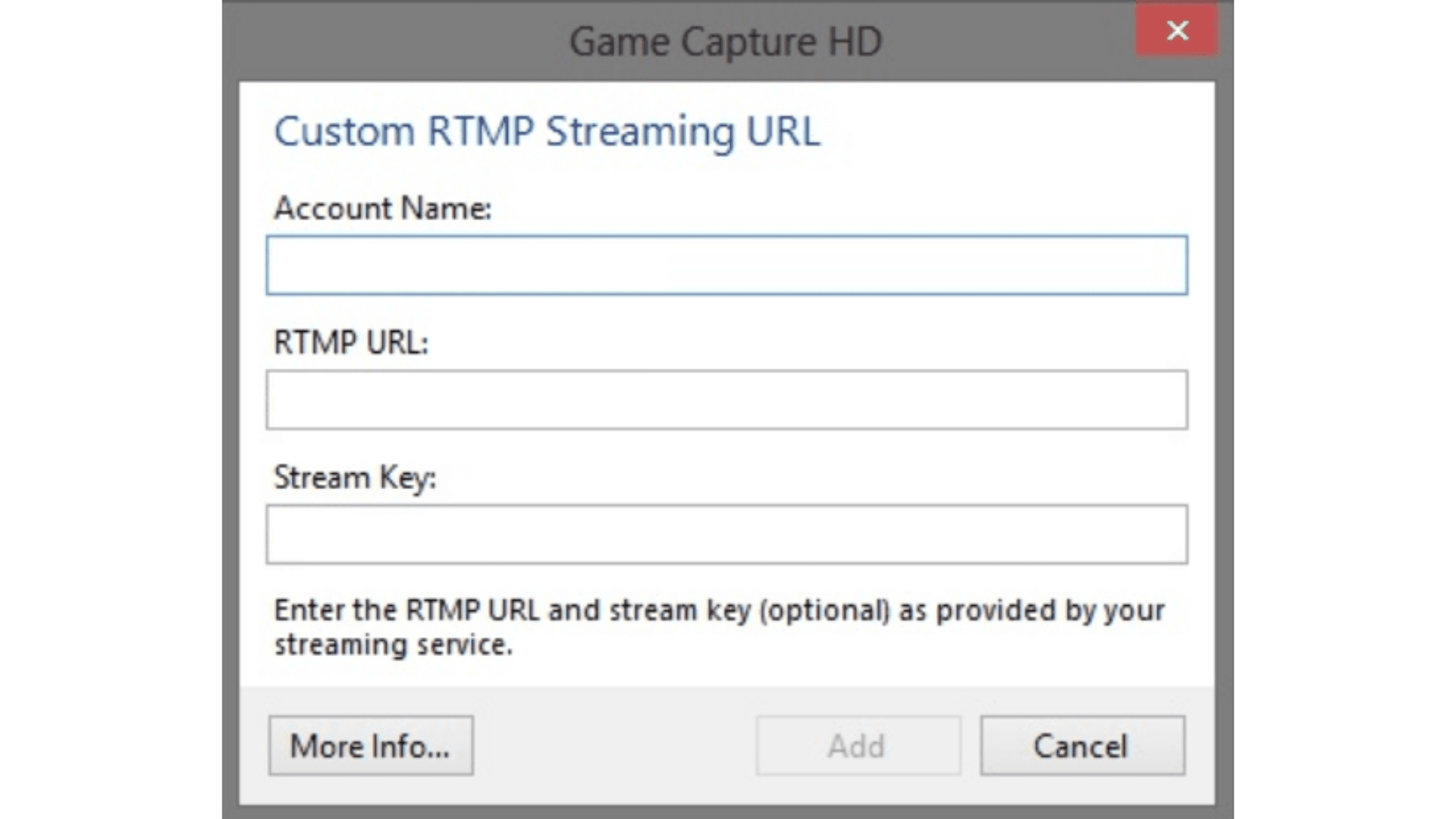 7. On Elgato Game Capture, press the "+" button next to the Account option and select rtmp://
