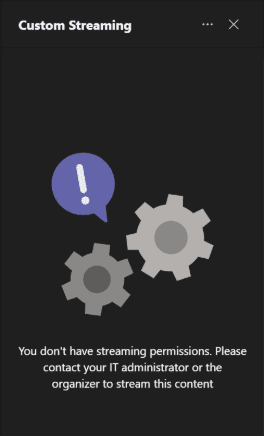 9. If you do not have the live streaming mode policy available to you, you will see a message in the app directing you to contact your IT administrator.
