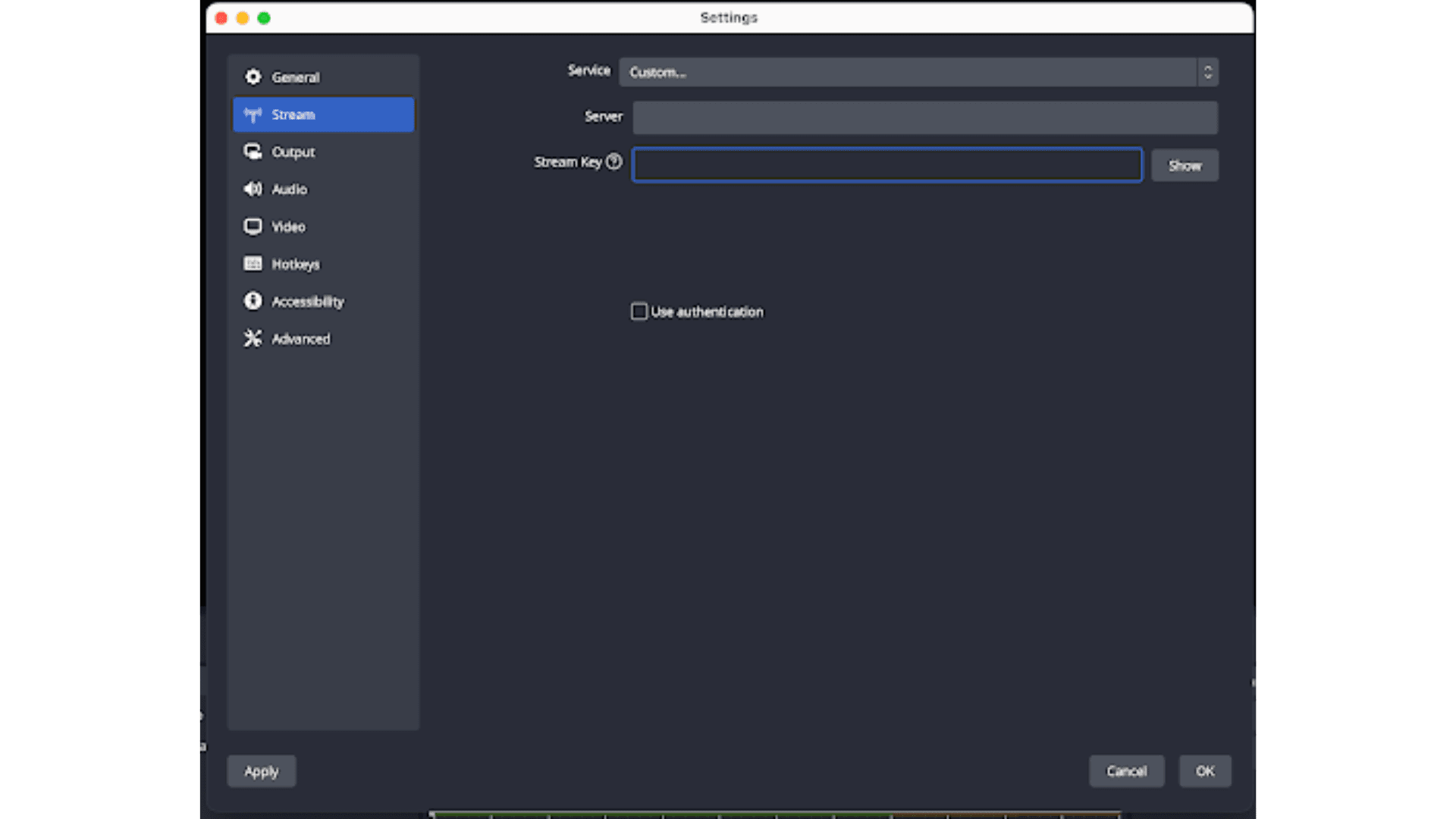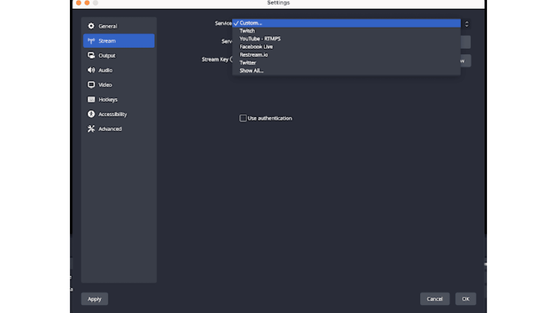 7. On your OBS account, go to settings and then click ‘Stream’.