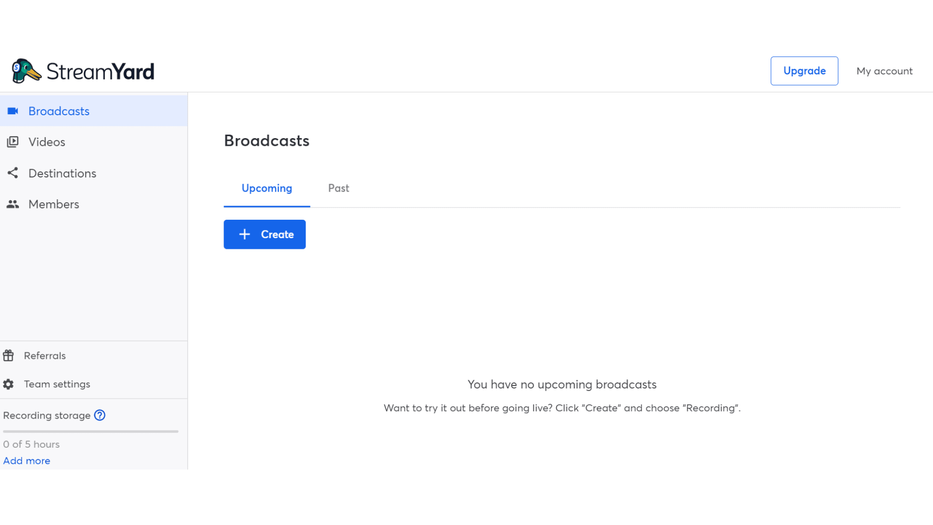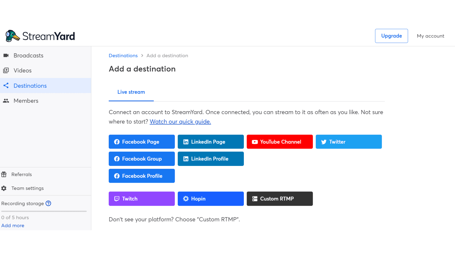 7. On your Streamyard account, Click ‘Destinations’ on the left-hand panel.