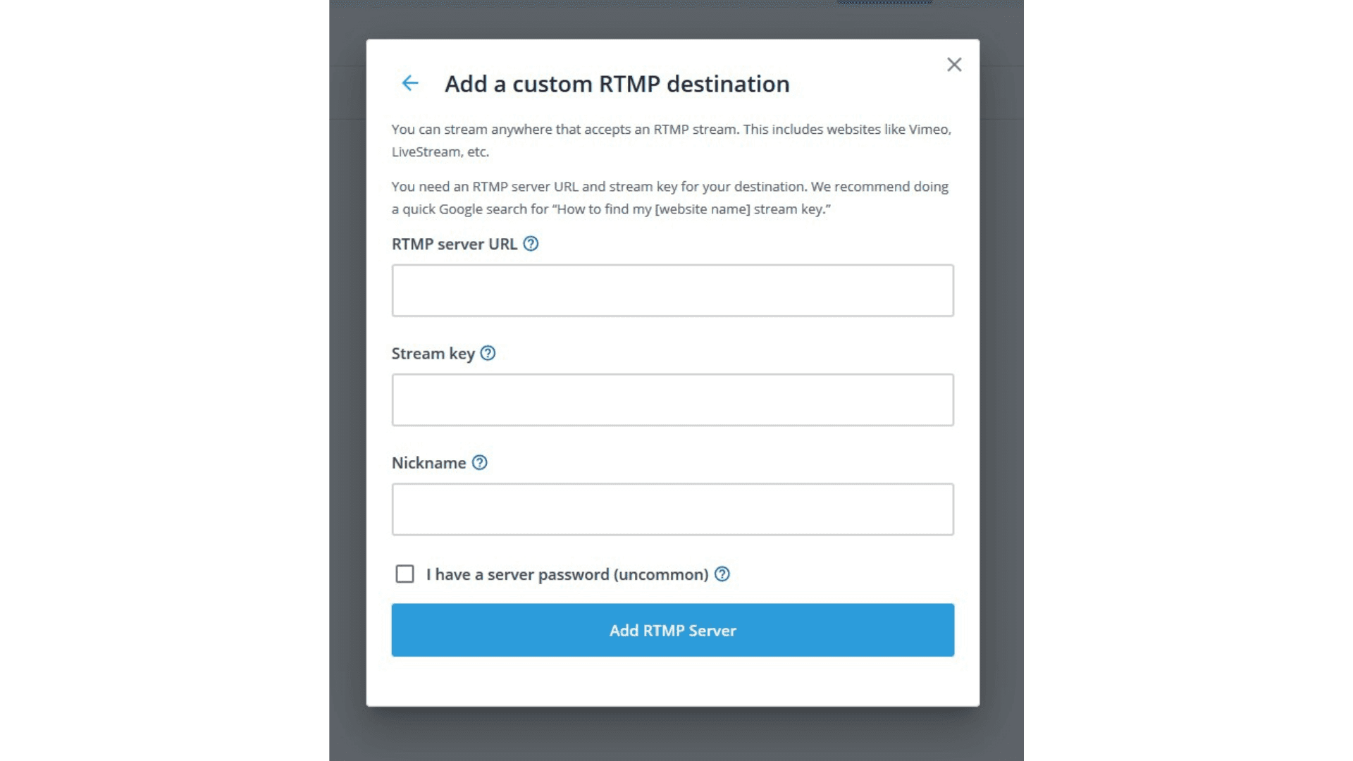 8. Click ‘Custom RTMP’.